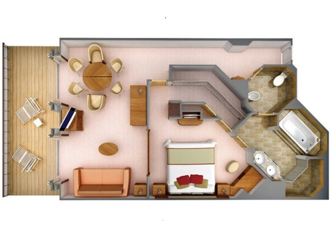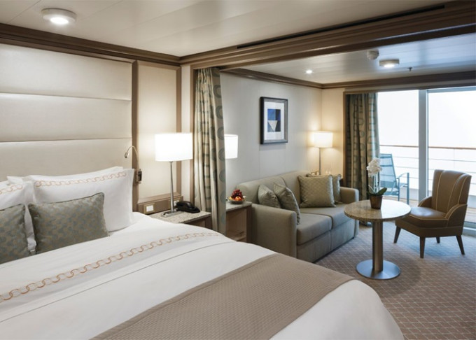 | R1 - Royal Suite 1 92 m² (vrátane balkóna 12 m²), Spálňa s obývacou a jedálenskou časťou. 7. paluba vpredu. Max 3 osoby. | 33 000 € 11 000 € za osobu | ||
